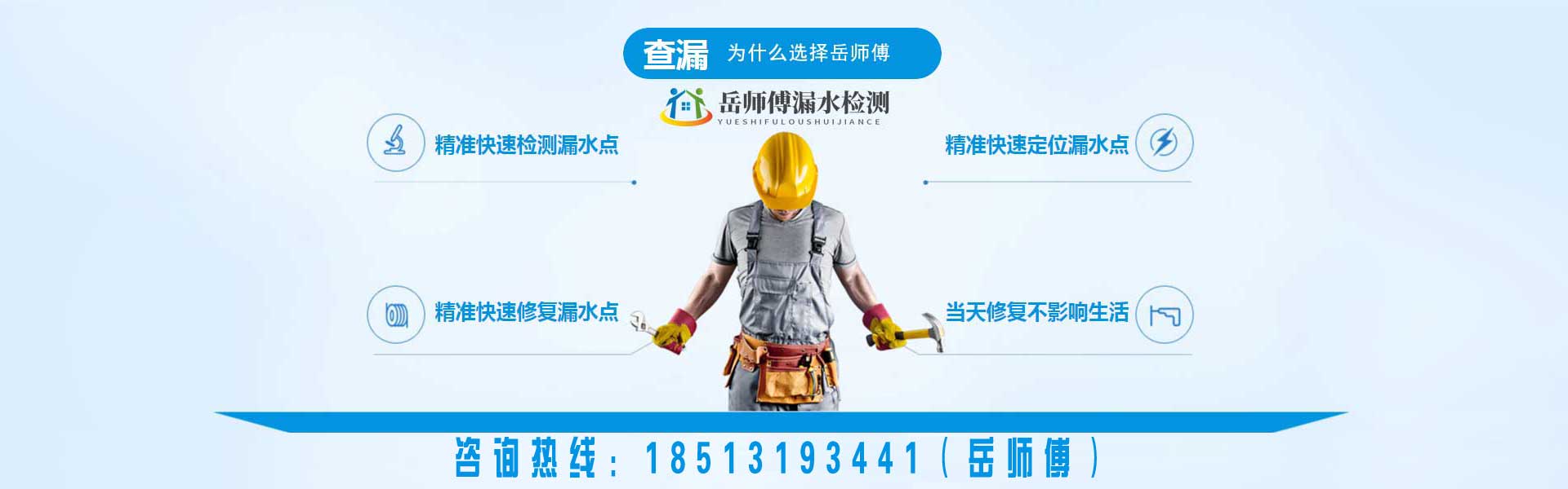北京岳師傅漏水檢測維修(北京京誠快修漏水檢測有限公司)專業(yè)從事漏水檢測維修服務,包括衛(wèi)生間漏水檢測,廚房漏水檢測,房屋漏水檢測,地暖漏水檢測,管道漏水檢測,家庭暗管滲水查漏,室內外漏水檢測,暗管漏水檢測等,針對各種漏水檢測維修情況提供最佳方案及服務。引進進口設備儀器,配備相關儀,巡管儀,熱像儀,測漏儀,氣體示蹤儀專業(yè)設備查找室外暗埋熱力管網(wǎng)漏水,自來水管網(wǎng)漏水消防管網(wǎng)漏水,探測深度可達地下5米深的500型管道漏水點精準定位。室內漏水精準定位漏水點、零誤差維修墻角起堿、掉皮。免砸磚維修防水,水管打壓。以技術領先為基、誠信服務為準、質量保證為則,建立一批技過硬的技術人員經(jīng)驗豐富服務領先的工程團隊,...